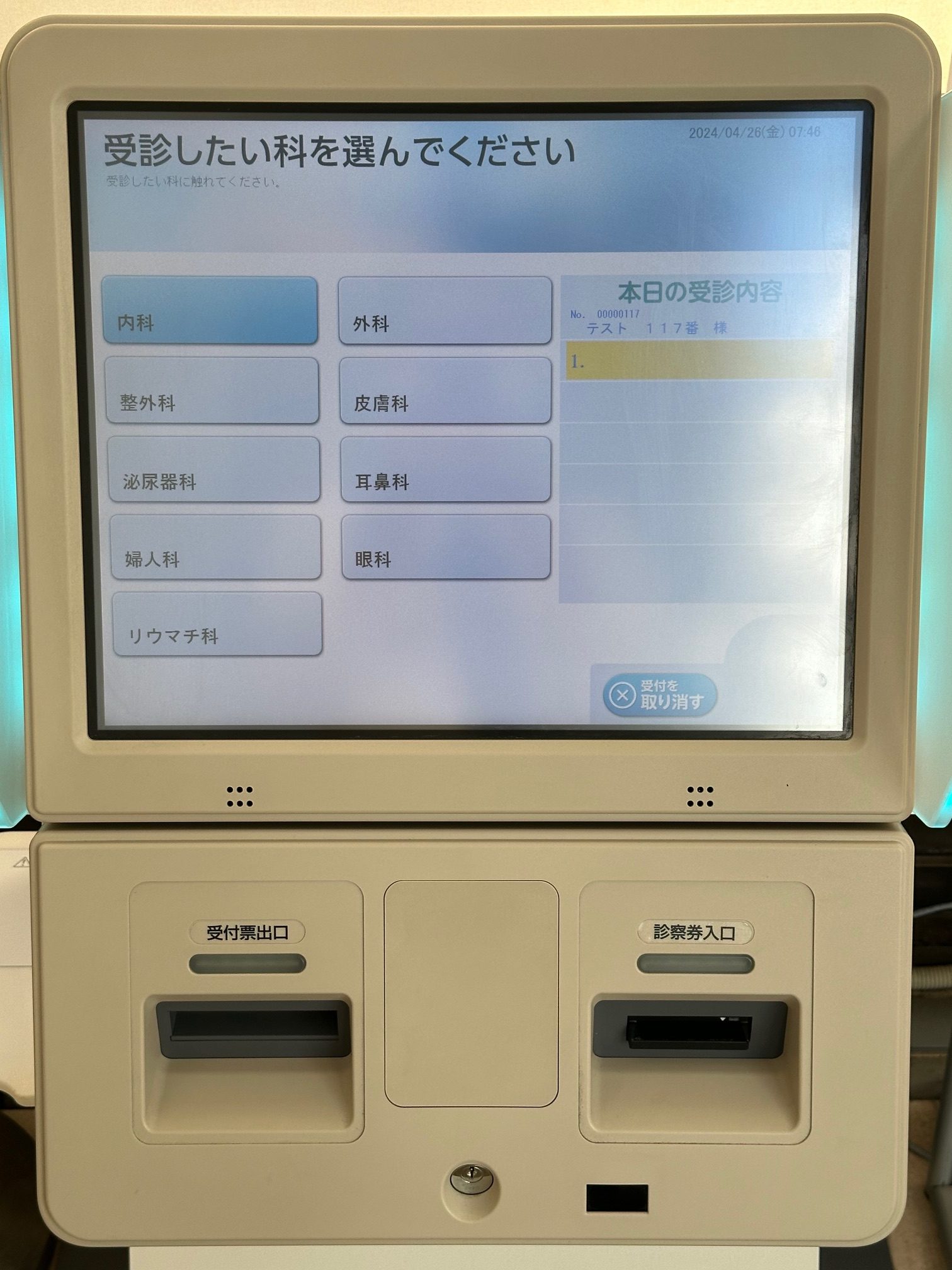 - 受診科の表示がない場合は初診となります。1F受付窓口に申し出て下さい。